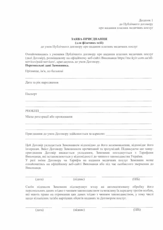 Публічний договір про надання платних медичних послуг