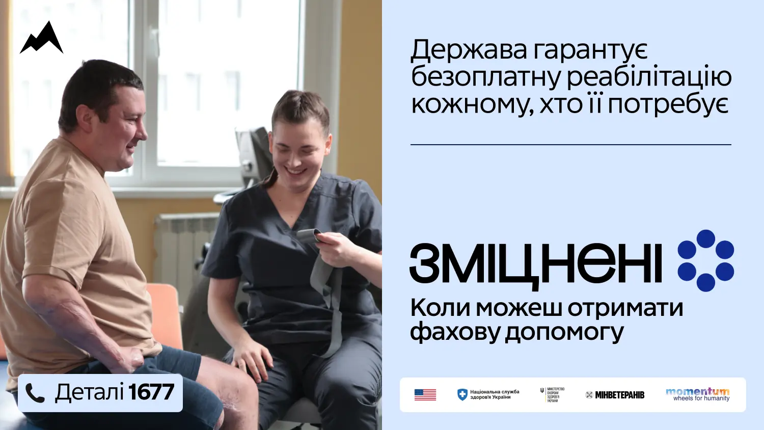 В Україні стартувала комунікаційна кампанія «Зміцнені» про безоплатну реабілітацію Національна служба здоров’я України в партнерстві з Міністерством охорони здоров’я, Міністерством у справах ветеранів, за підтримки проєкту
